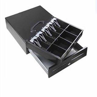 Tiroir de caisse avec 5 emplacements pour billets de banque et 4 emplacements pour pièces de monnaie.